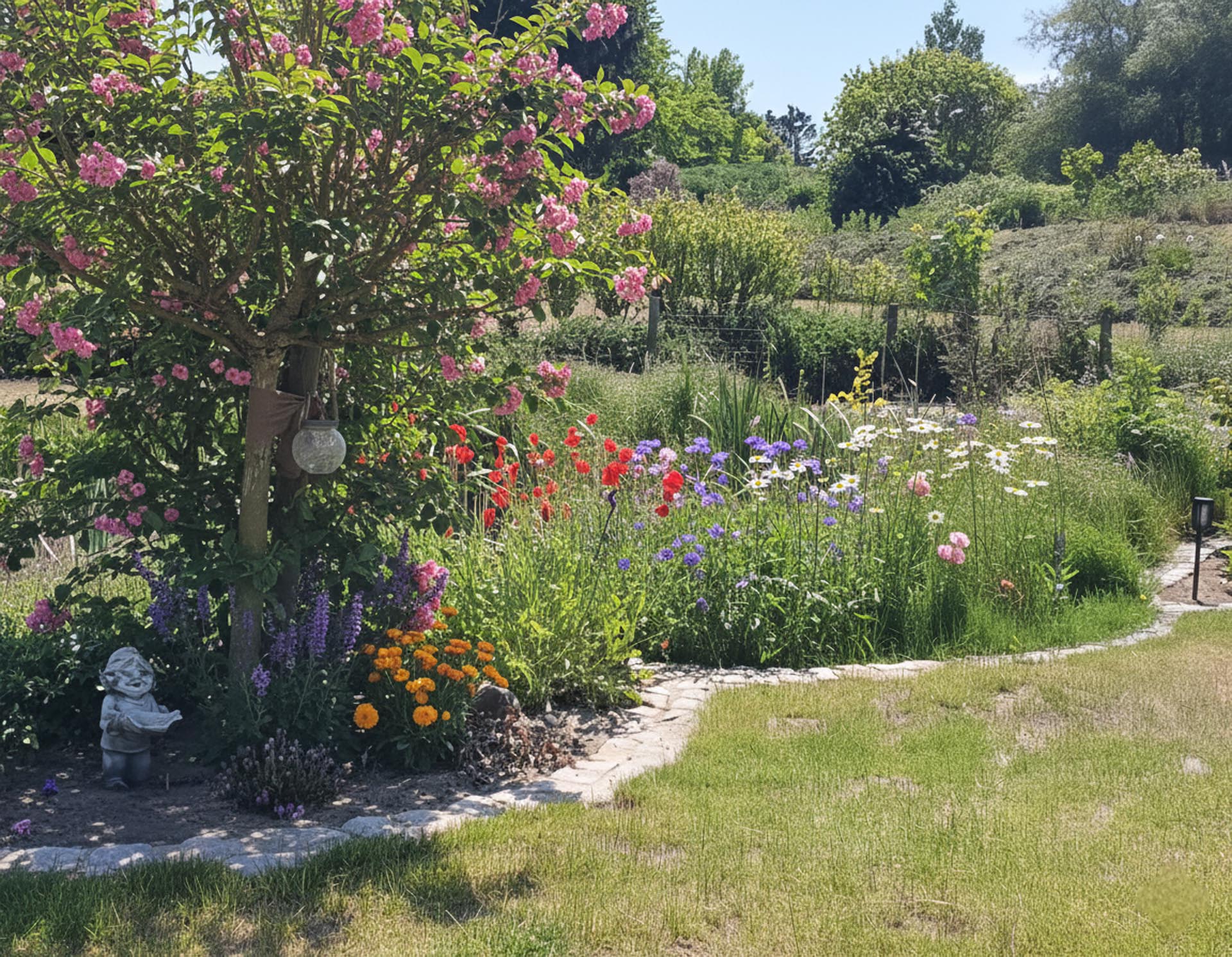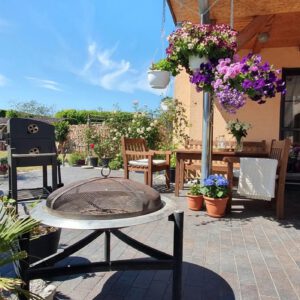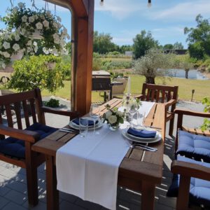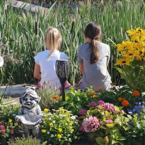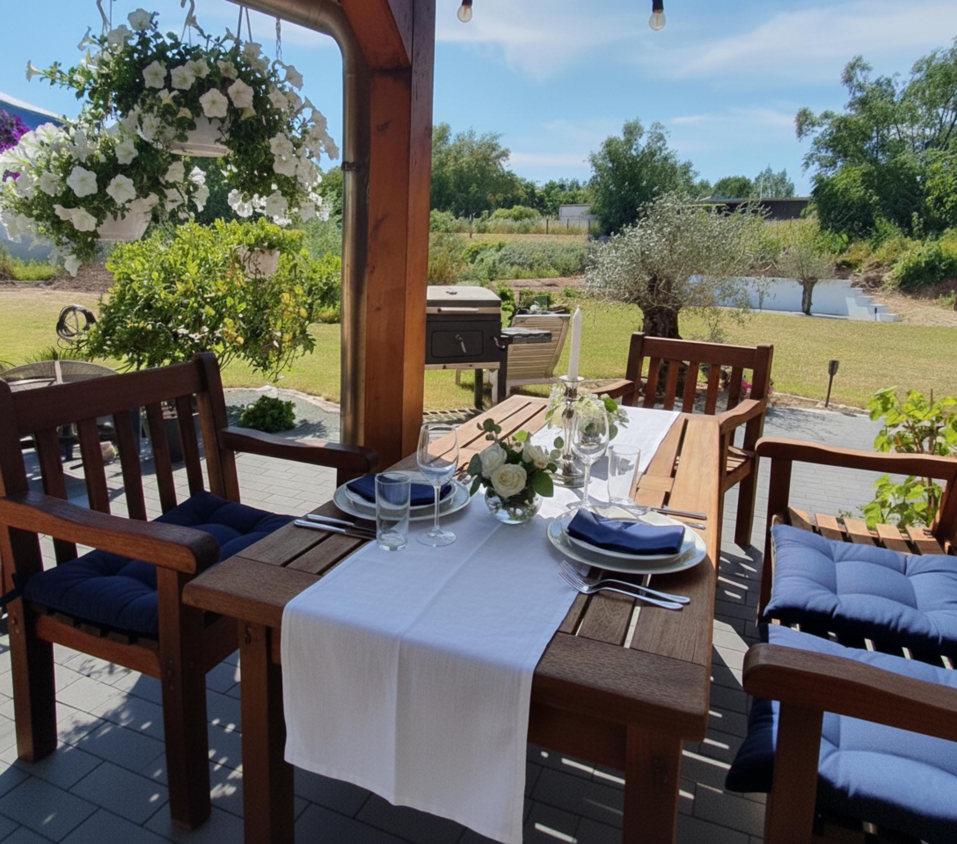 Der Garten und die Terrasse bieten viel Platz für Erholung, Spiel und Spaß. Hier fühlen sich nicht nur die Vögel wohl. Neben Schwalben, Enten und Fröschen besucht uns auch gerne der Grauhreiher und fischt im Teich nach kleinen Leckerbissen.
