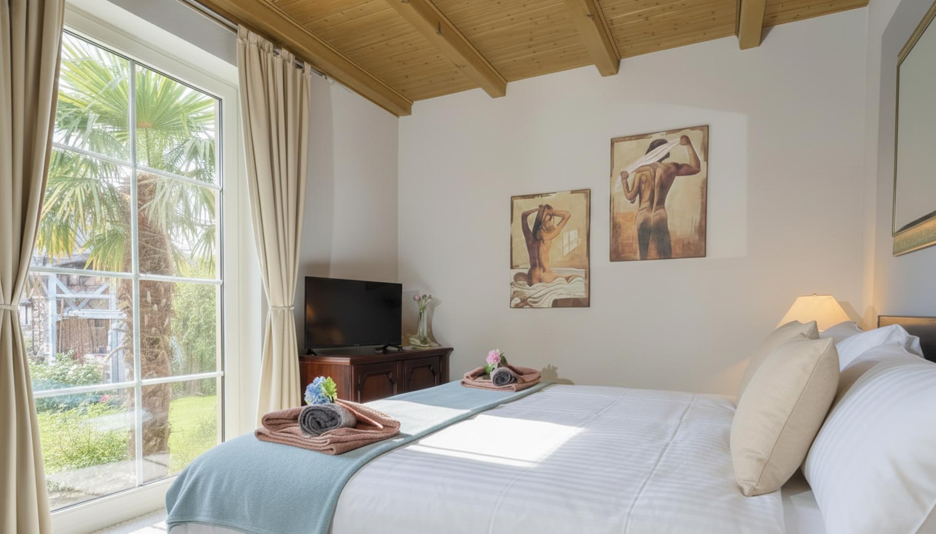 Unser Ferienhaus bietet ihnen zwei Schlafzimmer mit zwei Doppelboxspringbetten für erholsamen Schlafkomfort für bis zu 4 Personen. Auch ein Babybett steht auf Anfrage kostenfrei zur Verfügung...